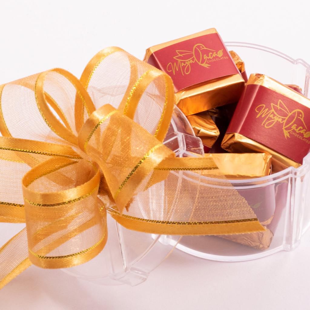Chocolatitos empacados individualemente 70% cacao, bajos en azúcar.